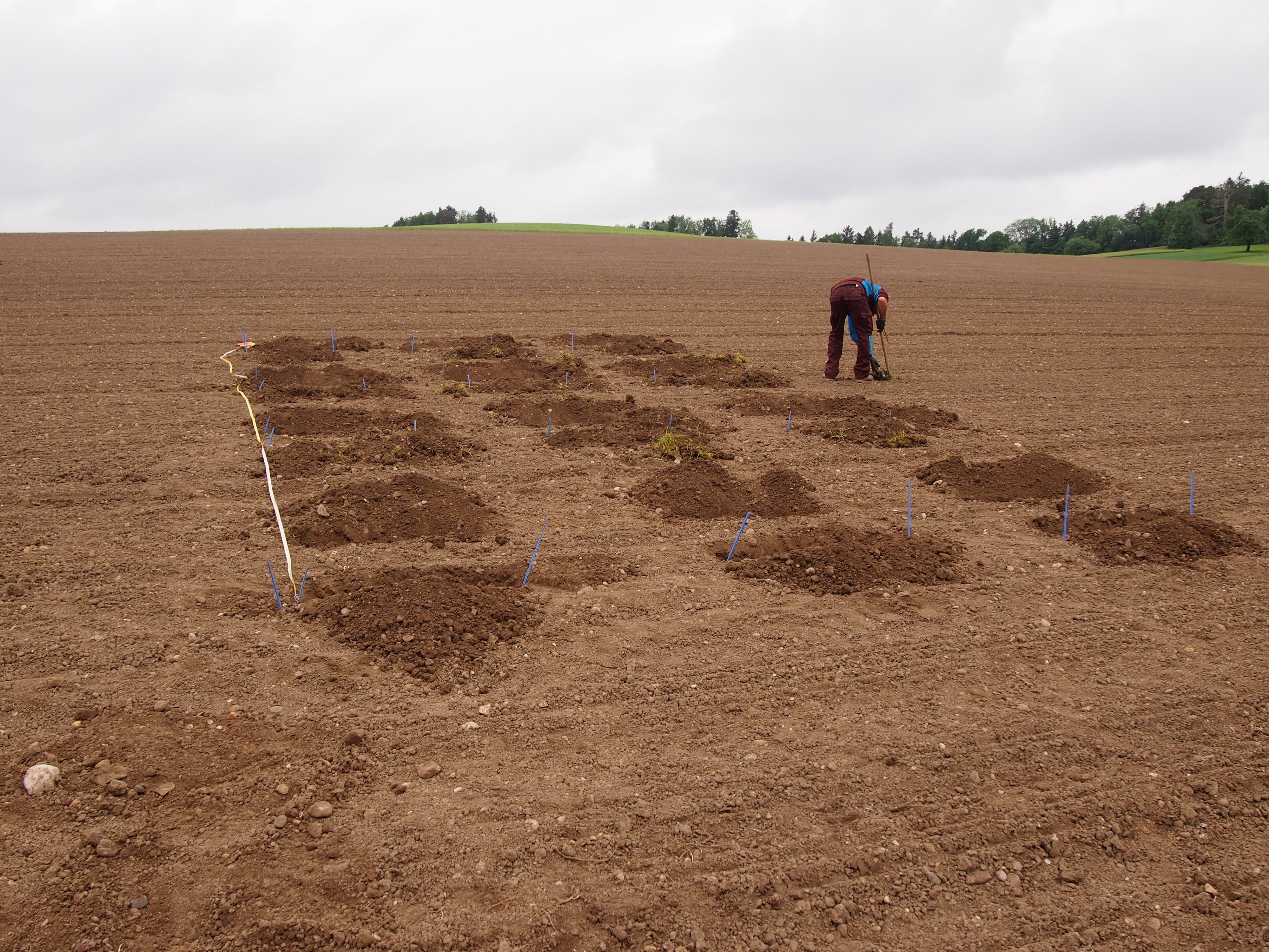 Figure 4: Field inoculation experiments to enhance sustainable plant production. In replicated field experiments we test whether the addition of arbuscular mycorrhizal fungi can be used to improve plant productivity and reduce fertiliser input. Photo: Franz Bender.